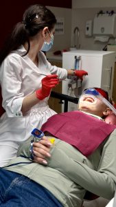 Емаль молочних зубів тонка та не досить щільна, вона не може забезпечити надійний захист від карієсу. Тому для її ущільнення та зміцнення на зуби наносять багаті на фтор сполуки, які проникають глибоко в тканини зуба. Ще один метод профілактики карієсу в дитячій стоматології – герметизація фісур. Жувальні поверхні зубів рельєфні, за рахунок цього вони краще перетирають їжу. Але деякі поглиблення закриті, широкі знизу та вузькі вгорі. Коли туди потрапляють частинки їжі, вичистити їх практично неможливо. Щоб не створювати сприятливі умови для розвитку карієсу, такі поглиблення (фісури) запечатують полімерним складом.